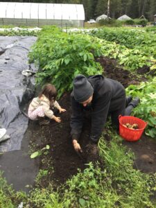 I have been fortunate to have had support from many people over the years as the farm went from pipe dream to finding real land, to clearing (very real) forest and creating gardens and greenhouses, to dealing with injuries, exhaustion, and doubt, to getting to plant and tend beautiful crops, to becoming a mother, to dealing with insects, soil chemistry, plumbing, megafauna and mud, and to doing seemingly endless horticultural experimentation (trial, and lots of error). The support I have received has been a gift that I treasure and recall in the daily movements of my work on “my” land—it may be mine on paper, but in fact it is the creation of many.